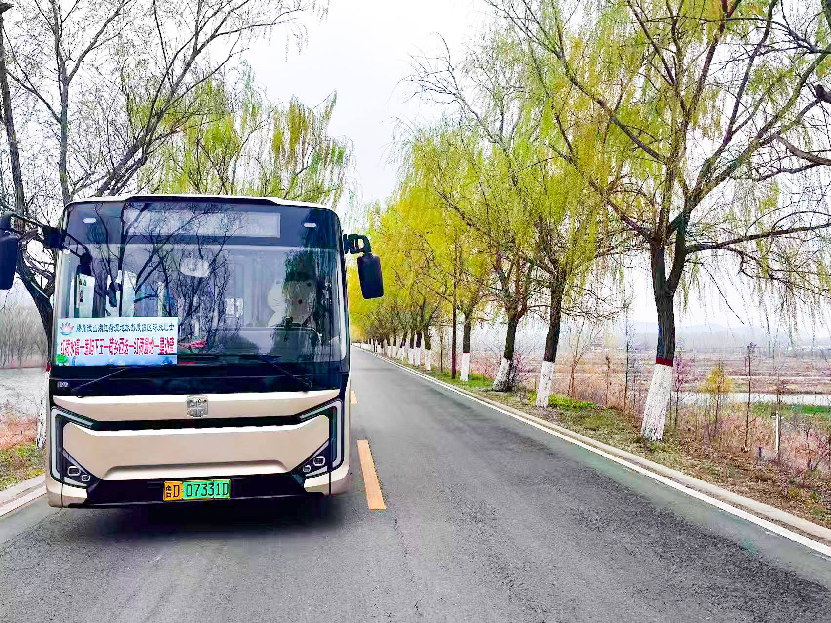 该专线车辆前车窗左侧设有“滕州微山湖红荷湿地旅游度假区环线巴士”标识,运行路线沿河堤路而行,途经红荷水镇、莲屿下王、荷香西迭、红荷湿地、星动营等站点,让游客在前往景区的途中也能欣赏沿途自然风光。市民游客无需购票、无需预约,即可就近乘车,极大方便了自由行游客及周边居民的出行需求。